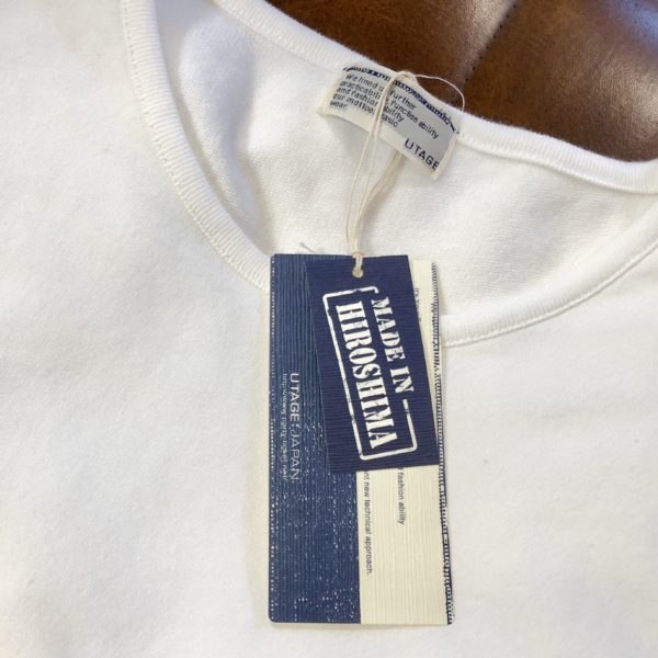 色はオフホワイト。無地。「MADE IN HIROSHIMA」の札がぶちええじゃろ?