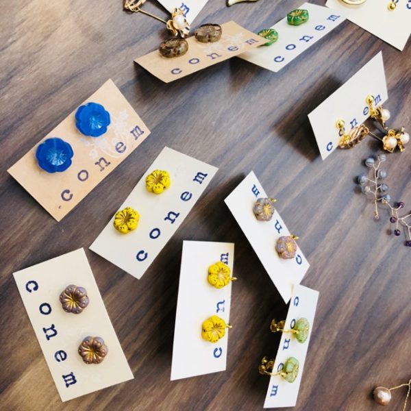 今回も、tit.(ティット)さんとconem(コネム)ちゃんそれぞれの個性全開のピアスやイヤリングが並びました。