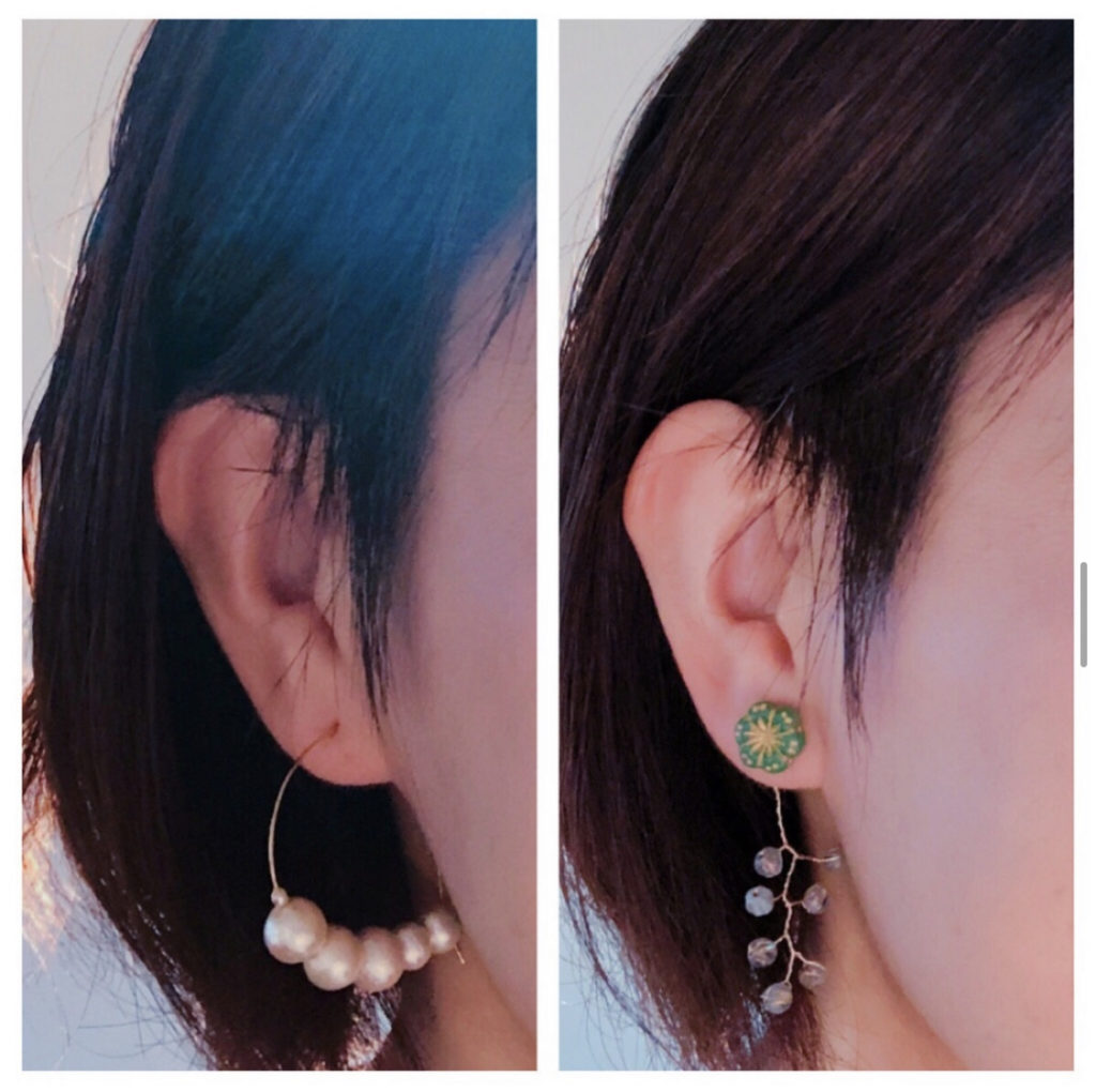 右がセミオーダーピアス(写真は、けつ子さんのブログからお借りしました)