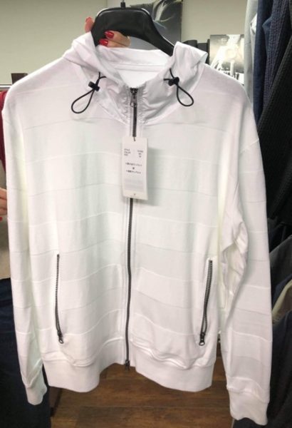 色違いは白。これは女性が着ても可愛いかもー♡ちなみに、これとよく似たデザインの、ニットとのコンビになったダウンジャケットの白は女性が買ってくださったんですよ!そういうのもアリですね〜。