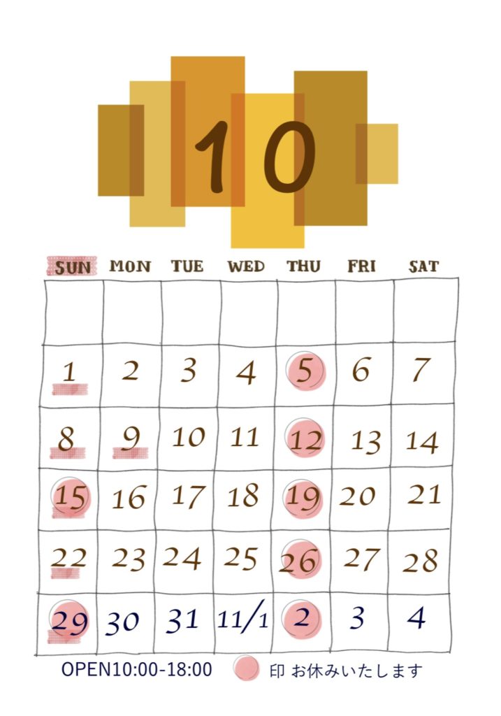 10月のお休みなどのお知らせです。