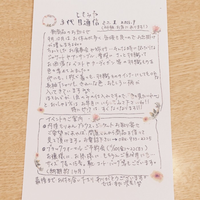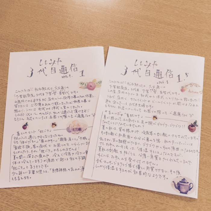 嫁みちよが「しもみや3代目通信」 第1号発行しました。