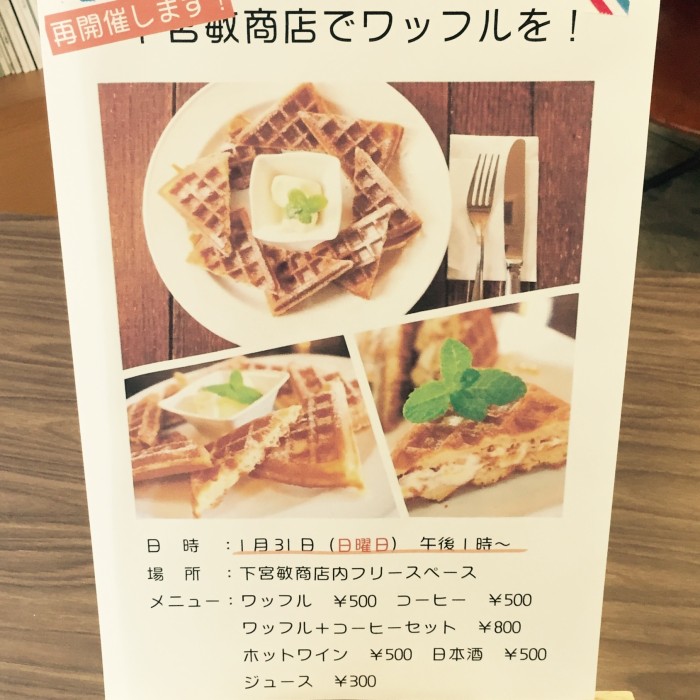 「下宮敏商店でワッフルを!」
