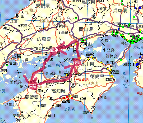 まずは、車で日帰りできそうな四国を行き先に決定し、