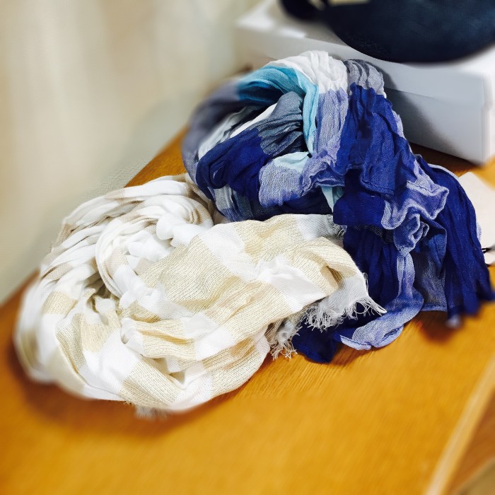 ストールを春もの(綿素材や綿麻素材)にしましょう。