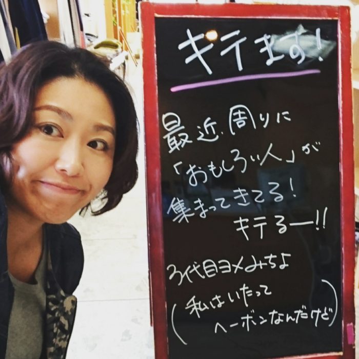 1973年10月10日生まれ。 広島県福山市の西部、JR松永駅近くの洋服屋「下宮敏商店」のヨメです。 洋服屋だけど着物も好きだったり、店内に本を並べて「みちよ文庫」を作ってみたり。きれいなものとお酒が大好き。