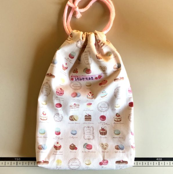 翌日、ハンドメイド作家さんと比べると、完成度は足元にも及ばないのですが、娘のシューズ袋を作りました。
