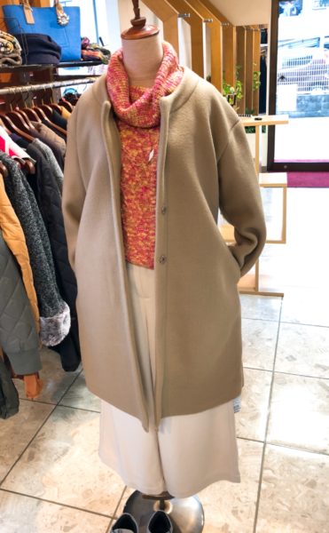 明るい色の春色ニットたちを中心に考えていましたが、なんだか来週からまた寒くなるとの予報なので、コートなどのアウターもあった方がいいかなーなどと思案しています。