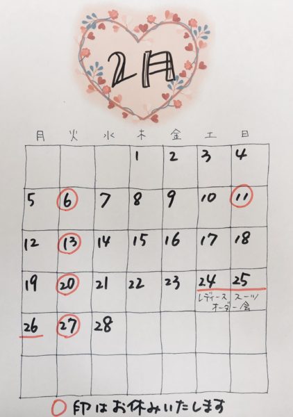2月のお休みのお知らせ
